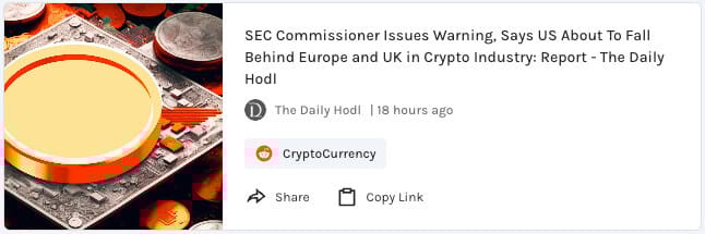 SEC Commissioner issues warning when saying the US is about to fall behind Europe/UK in the crypto industry
