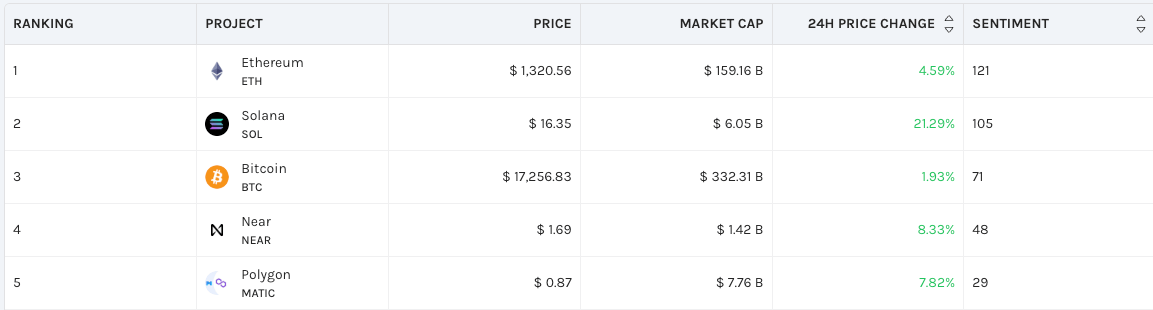 This is the ranking snapshot at time of writing. It is updated hourly on the Twitter sentiment ranking page
