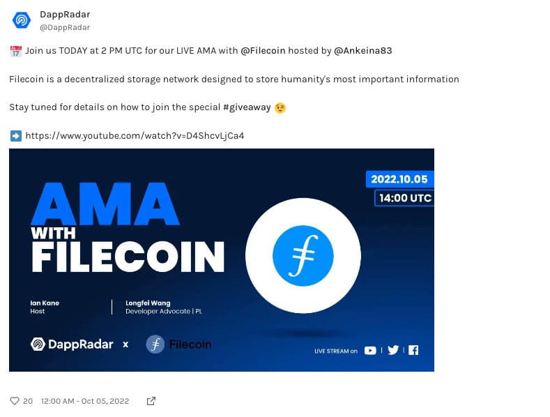 Filecoin hosted an AMA on their YouTube Channel