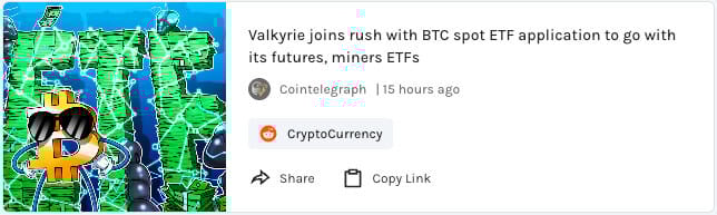 A major financial player has submitted another Bitcoin spot ETF application as Valkyrie joins the rush of others submitting applications