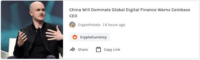 Coinbase CEO warns that China will dominate Global Digital Finance