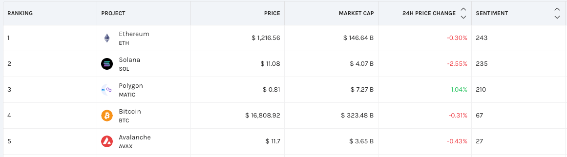 These are a few of the top sentiment movers for yesterday. Click on the project’s name to read more trending stories.