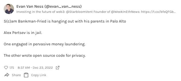 SBF released on bail, will be confined to his parents house in California. Some speculation that the judge that granted bail had gotten paid by SBF/FTX through her husband’s company. Recusing herself after bail had been granted.