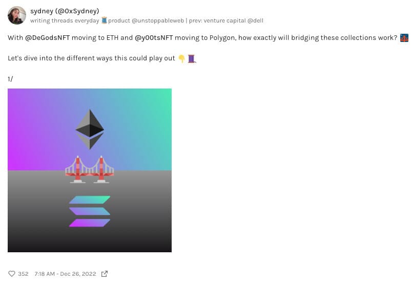 Top Solana NFT projects, DeGods plans to bridge to Eth and y00ts to Polygon