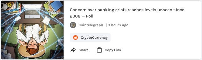 Banking crisis concerns reach levels unseen since the last banking crisis in 2008
