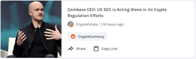 Coinbase CEO says the US SEC is acting along in its over-the-top crypto regulation efforts