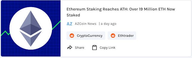 Ethereum staking reaches ATH with over 19M ETH staked