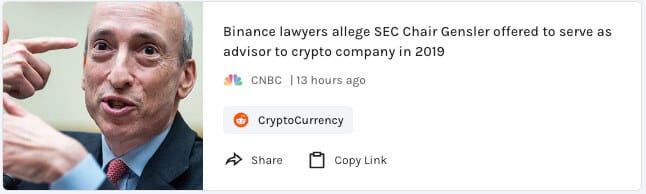 Binance lawyers allege SEC Chair Gensler offered to serve as an advisor for Binance in 2019. My oh my!