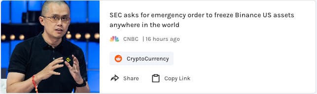- SEC sues Coinbase, asks to freeze BinanceUS funds worldwide