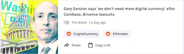 Whew, what a day yesterday was. SEC sues Coinbase. Alabama says Coinbase’s staking program violated state securities laws. Swift and Chainlink team up to connect financial institutions to blockchain networks. SEC asks to freeze BinanceUS funds worldwide.