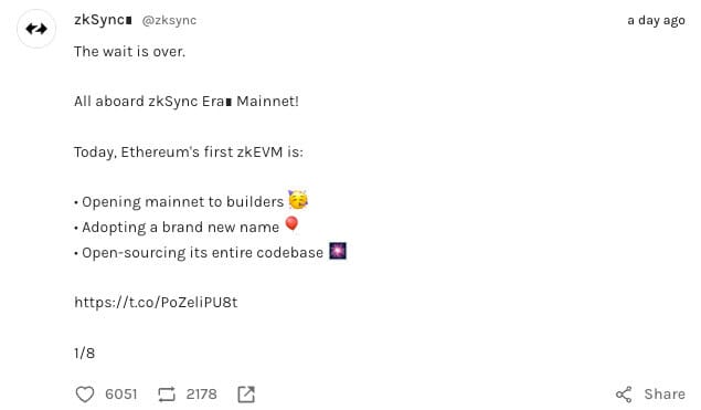 zkSync mainnet launches