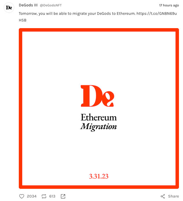 Kusama (+289): Currently have 10 Kusama OpenGov Referenda’s up for voteBlur (+298): Partnered with DeGods for their recommended marketplace as DeGods migrate to Ethereum1inch (+102): Upgraded 1inch Wallet to be compatible with Ledger hardware wallet and WalletConnect