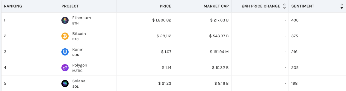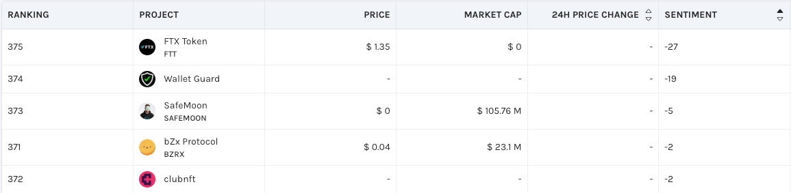 This is the ranking snapshot at time of writing. It is updated hourly on the Twitter sentiment ranking page