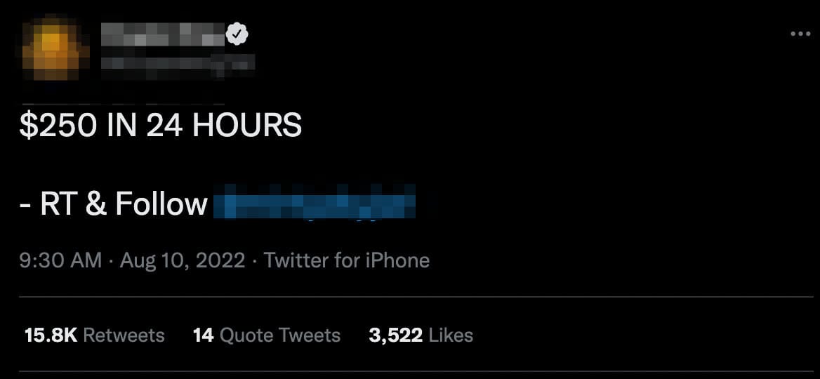 A tweet like this can generate 15k+ followers in 24 hours. I thought it was notable that this account is even a verified account on Twitter.