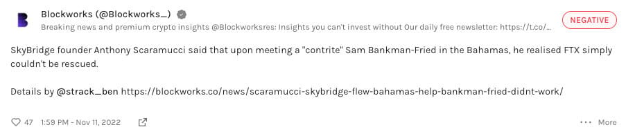 SkyBridge founder, Anthony Scaramucci, flew to the Bahamas to see if he could help SBF but realized FTX couldn’t be rescued