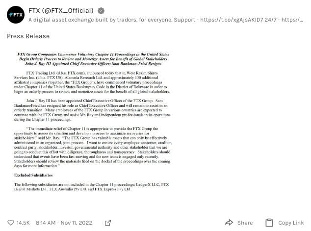 - Special Saturday Edition: FTX files for Chp 11 bankruptcy, hacked, and more