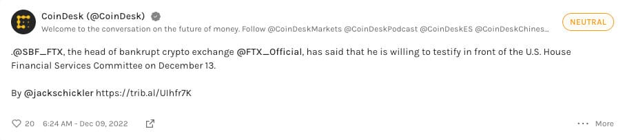 FTT pumped yesterday due to a SBF supporting a revival plan, clearly he would do support it to make it all back in one trade. Mr. Wonderful was paid a wonderful sum to be an FTX sponsor. GBTC is at a record discount. We’re heading into the weekend so make sure to enjoy it! We’ll see you back Monday.