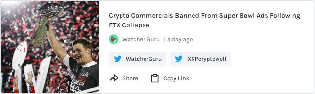Crypto commercials banned from Super Bowl Ads, weird time to announce this given we’re at the week of the Super Bowl. My guess is there was going to be no ads anyways and this is all lip service