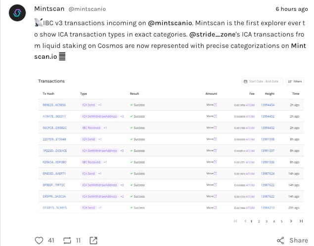 IBCv3 transactions coming to Mintscan. First explorer to show ICA transactions in exact categories