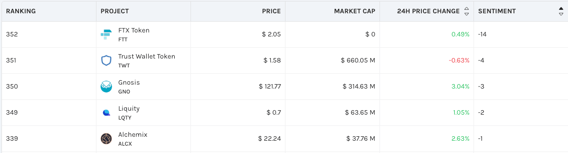 This is the ranking snapshot at time of writing. It is updated hourly on the Twitter sentiment ranking page
