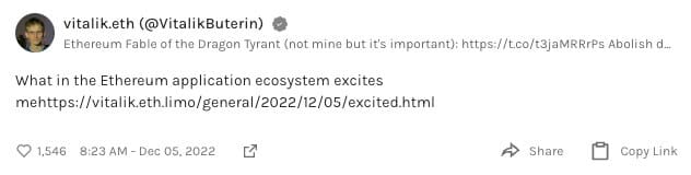 - Vitalik writes about things that excite him on the Ethereum ecosystem