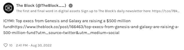 Execs from Genesis and Galaxy are trying to raise a $500M fund.